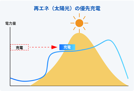 太陽光発電の余剰電力が発生する時間帯を予測し、その電力を優先的に利用して充電を行うことで、再生可能エネルギーの利用率を高めます。
